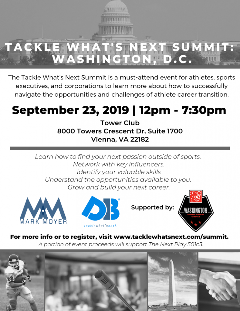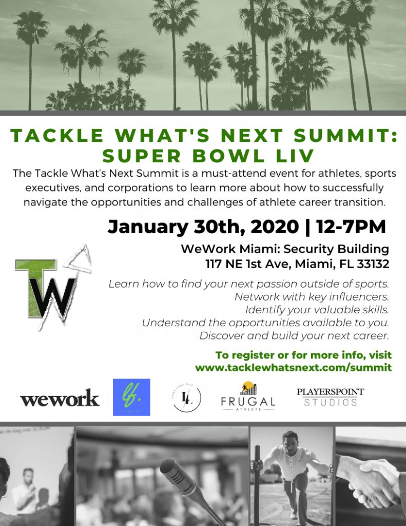 The Tackle What’s Next Summit is a must-attend event for athletes, sports executives, and corporations to learn more about how to successfully navigate the opportunities and challenges of athlete career transition.